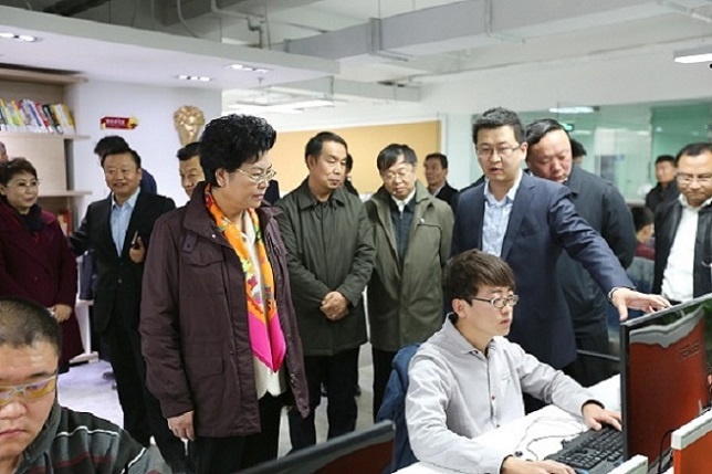 劉慧主席一行參觀了盛天彩公司創(chuàng)意設(shè)計制作、動漫衍生產(chǎn)品研發(fā)等部門及3D打印、錄音棚、攝影棚等創(chuàng)意設(shè)計設(shè)施和盛天彩職業(yè)技能培訓(xùn)學(xué)校、晟源國家職業(yè)技能鑒定所。